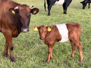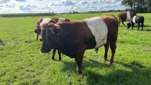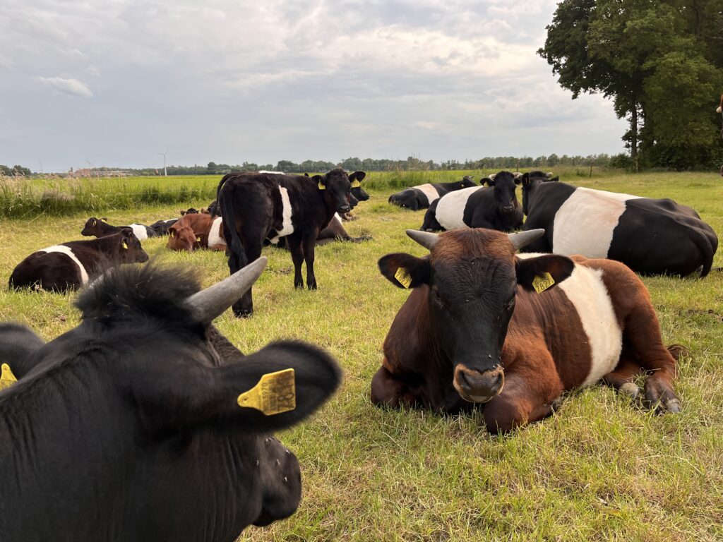 Dit bedreigde Oud Hollandse runderrras speelt een belangrijke rol in het beheer van onze graspercelen en natuurgronden. Ze zetten voor mensen onverteerbaar gras en andere plantenresten om in een waardevolle meststof voor onze akkers en graspercelen. Dit voedt het bodemleven en draagt bij aan een weerbare bodem en daardoor gezonde dieren en gewassen. Tegelijkertijd leveren zij smakelijk en hoogwaardig rundvlees. Alle kalveren groeien op in familiegroepen en blijven bij ons totdat ze ons bedrijf verlaten als hoogwaardig fokvee of voor de slacht.